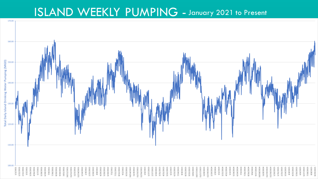 Island Weekly Pumpage, January 2021 to August 29, 2025