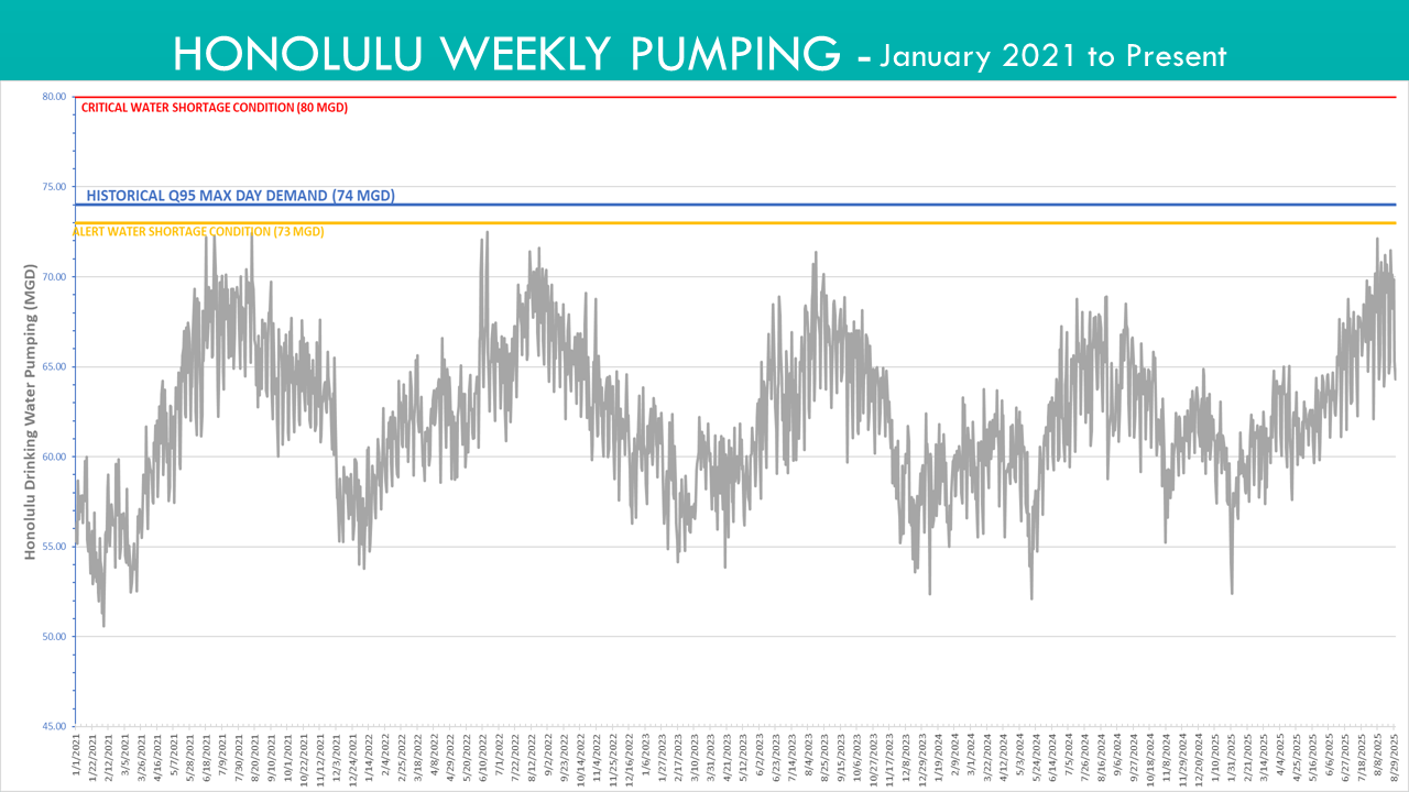 Honolulu Weekly Pumpage, January 2021 to August 29, 2025