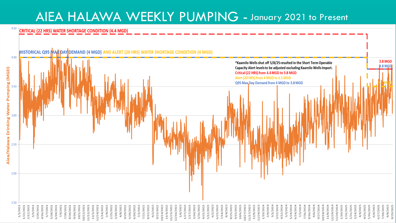 ʻAiea-Hālawa Weekly Pumpage, January 2021 to August 29, 2025